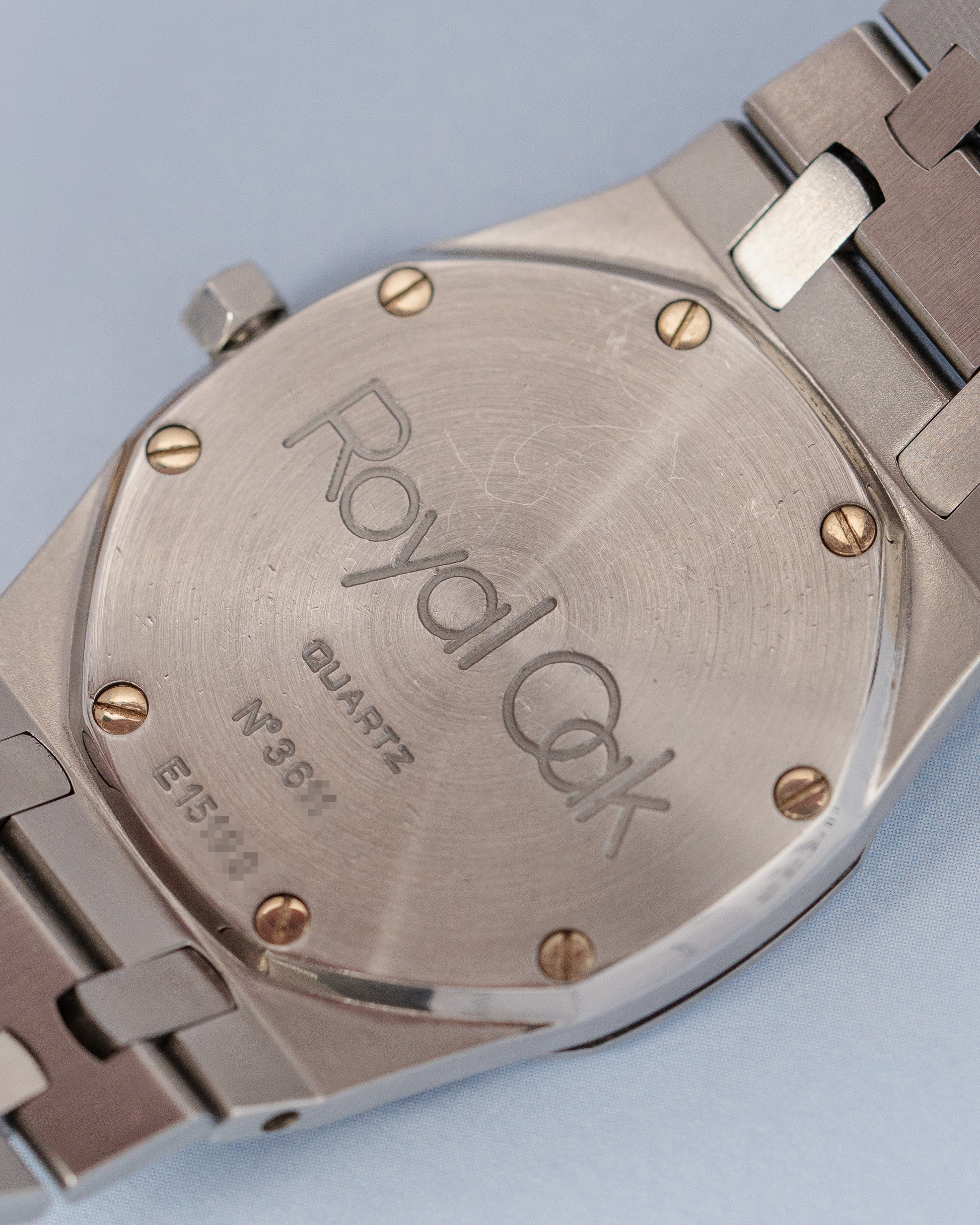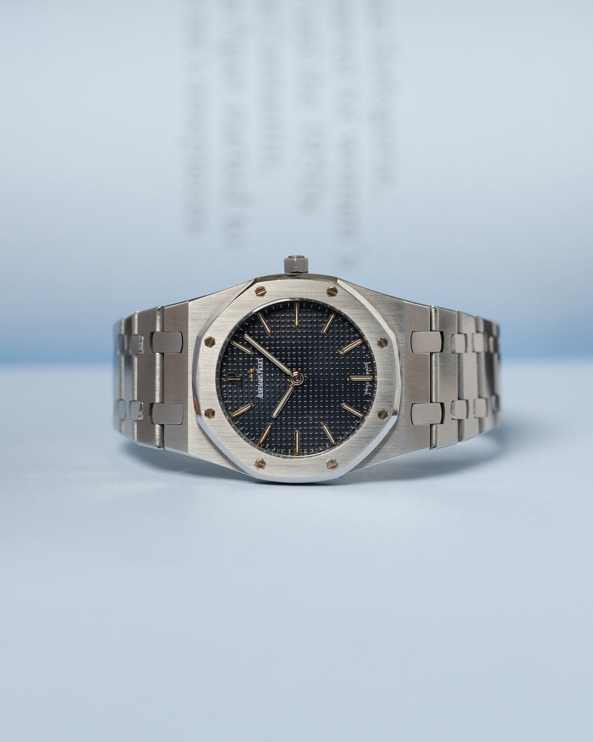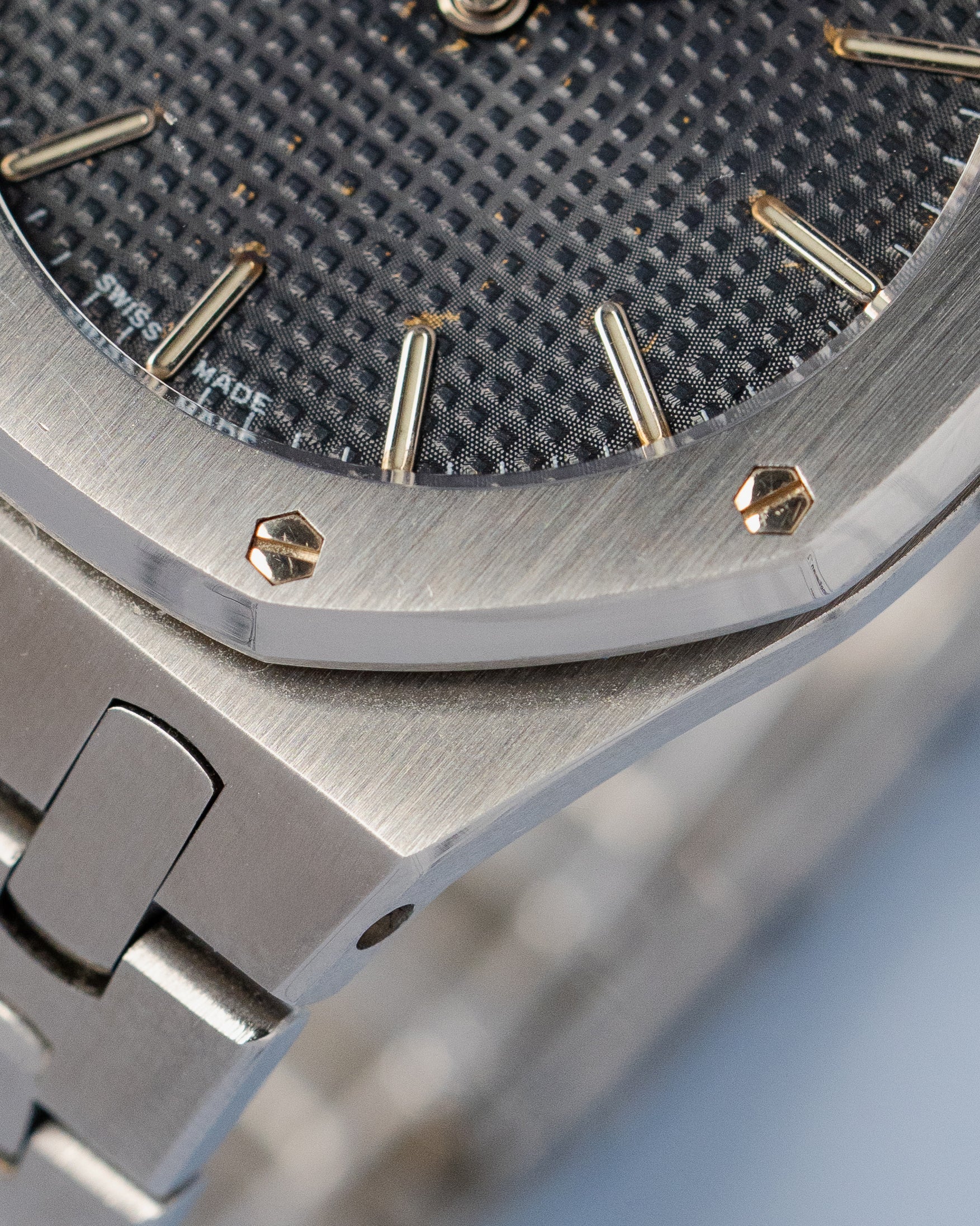 The star of the show, however, is the dial. This example features a tapisserie black dial that clearly shows the texture that the Royal Oak is known for. Over the decades, it has developed a subtle gold patina over the dial that enhances its character without overwhelming its clean design. It’s the kind of honest, graceful aging that collectors seek but rarely find.